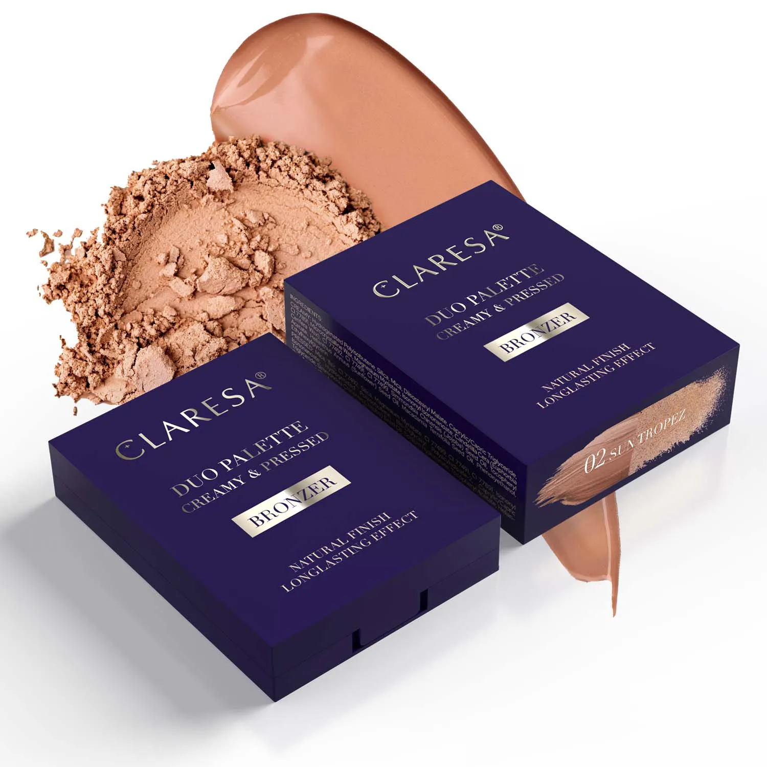 Popolna kombinacija dveh formul – kremne in stisnjene – v eni paleti. Gladko se zabrišeta, kar omogoča natančno konturiranje in oblikovanje. Bronzerja se dopolnjujeta ter ustvarjata subtilne in naravne prehode. Učinek soncem poljubljene kože je na dosegu roke!