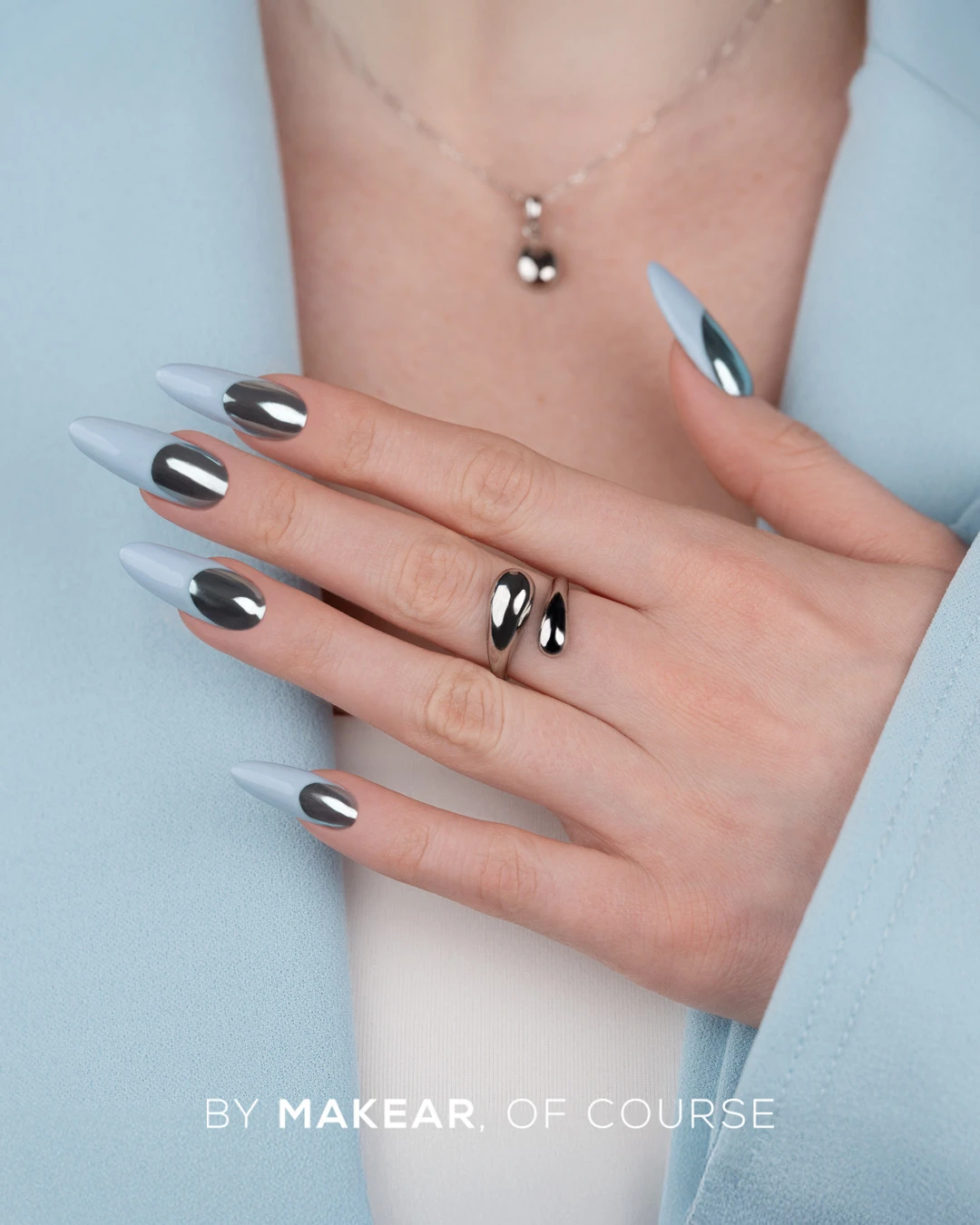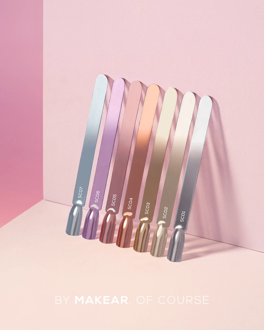 SFX Liquid MAKEAR je priročna alternativa pigmentom v prahu, ki zagotavlja čistočo in maksimalno natančnost med oblikovanjem nohtov. Omogoča vam doseganje gladkega, kovinskega zrcalnega učinka brez nereda na delovnem mestu.